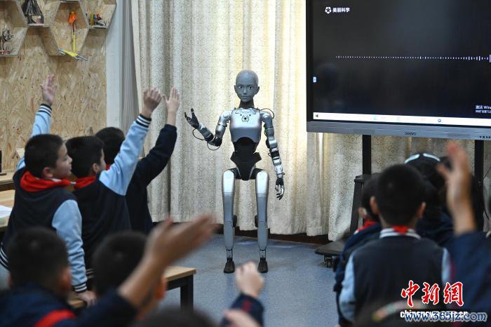 10月27日,大家首款全尺寸仿生教训机器东谈主在安徽省合肥市亮相,并与专科至意相助教训了一堂科学教训课。中新社记者 韩苏原 摄